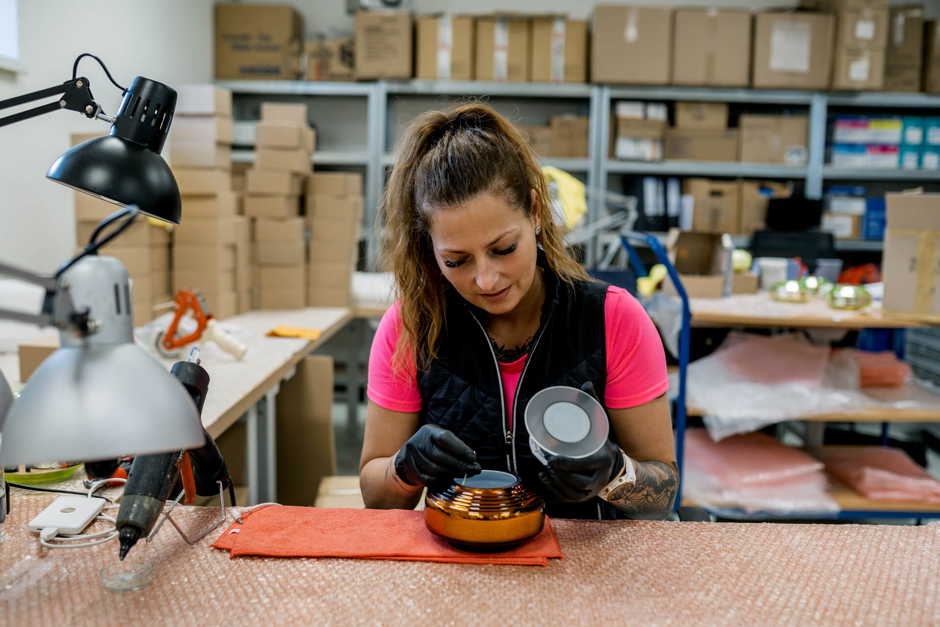 Jeho cesta začíná u zkušených sklářů, kteří tvarují skleněné tělo. Poté následuje pečlivé dokončování, při kterém každý detail dostává svou jedinečnou podobu.