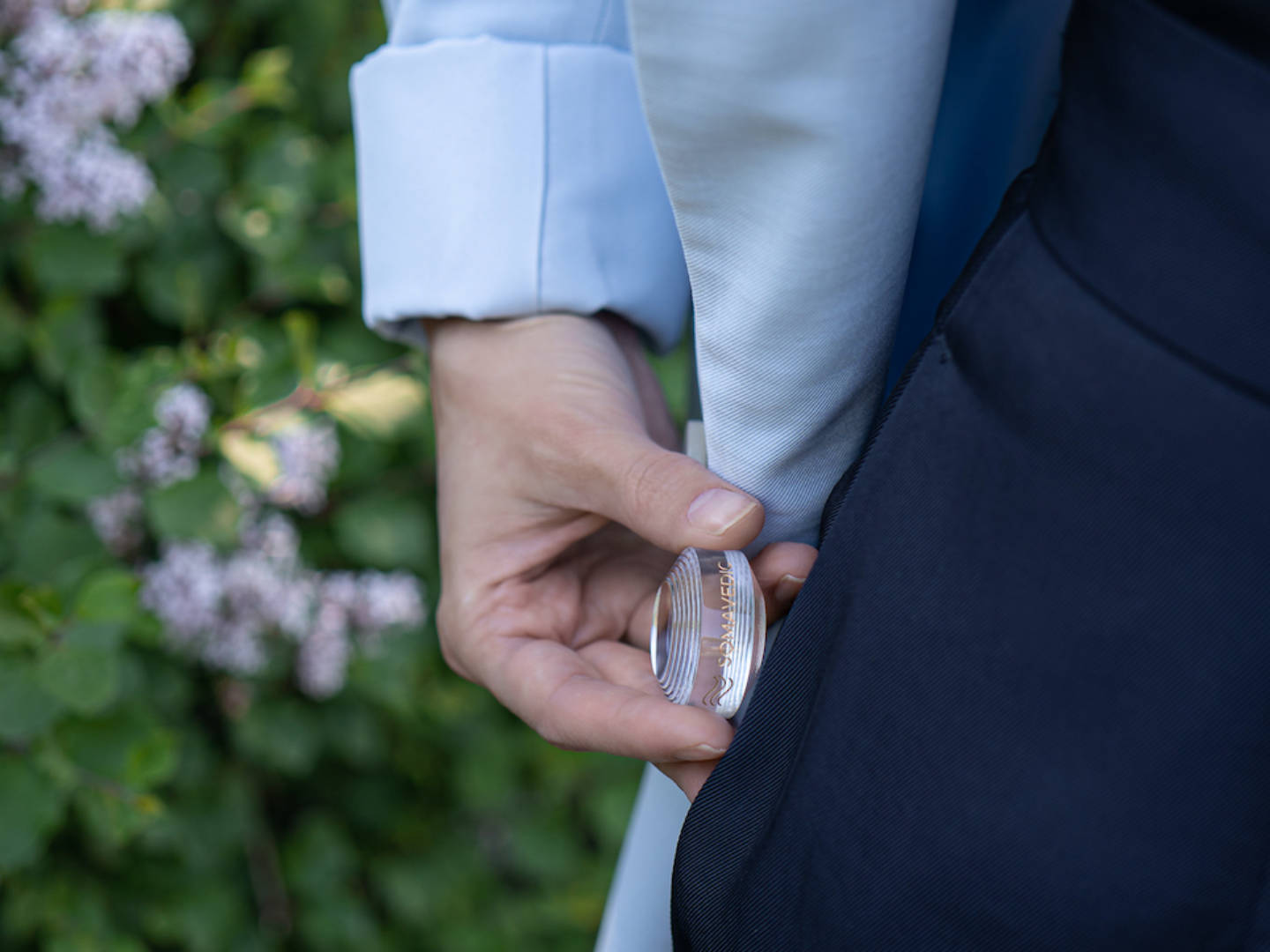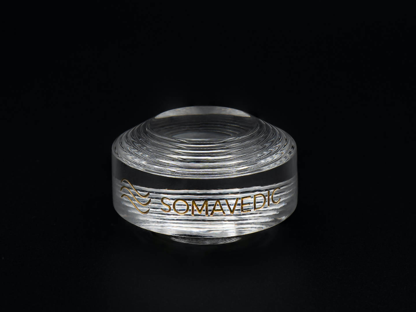 Model Button je navržen tak, aby absorboval část energie vašeho zařízení Somavedic, kterou si můžete nosit s sebou v kapse i mimo domov. Účinek nabitého modelu Button vydrží 8 hodin, pokud byl nabíjen přes noc, a působí do vzdálenosti několika desítek centimetrů ve všech směrech. Abyste mohli využívat výhody produktu Button, musíte disponovat zařízením Somavedic. Doporučujeme ho nabíjet pomocí modelů Somavedic Vedic, Rosalin, Anthracite, Traveler, Amber a Gold.
